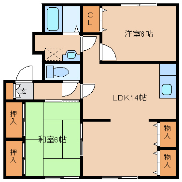 洋室6帖+和室6帖+LDK14帖