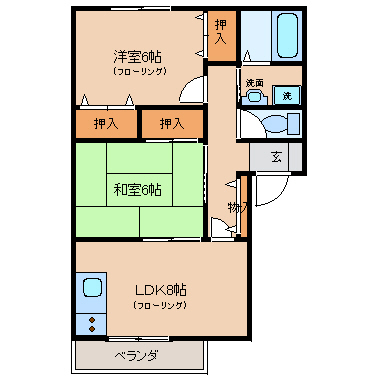 洋室6帖+和室6帖+LDK8帖 |