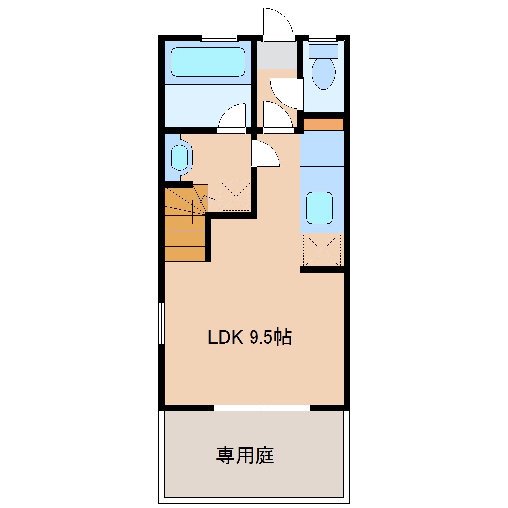 赤江の住宅地の中にあるメゾネットタイプの物件です。