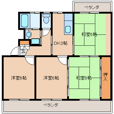 和室6帖+和室6帖+洋室6帖+洋室6帖+DK