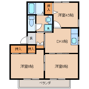洋室6帖+洋室6帖+洋室4.5帖+DK |