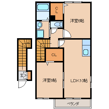 洋室6帖+洋室6帖+LDK10帖