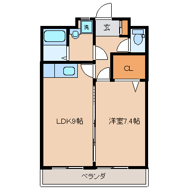 洋室7.4帖+LDK9帖