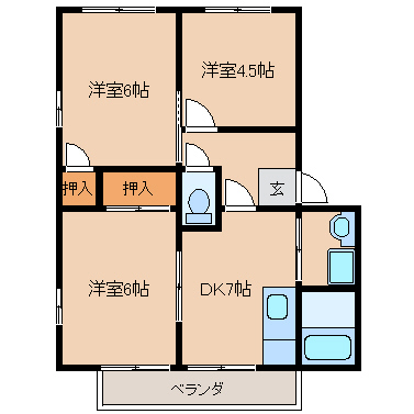 洋室6帖+洋室6帖+洋室4.5帖+DK7帖