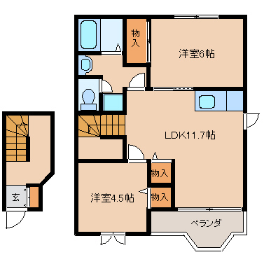洋室6帖+洋室4.5帖+LDK11.7帖 |