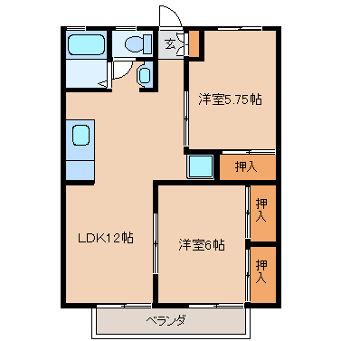 洋室6.5帖+洋室5.75帖+LDK12帖