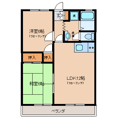 洋室6帖+和室6帖+LDK12帖