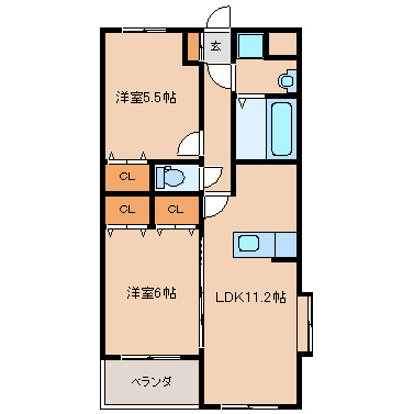 洋室5.5帖+洋室6.1帖+LDK11.2帖 |
