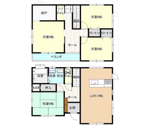 間取内訳:洋8、洋6、洋6、和6、LDK14、S3
