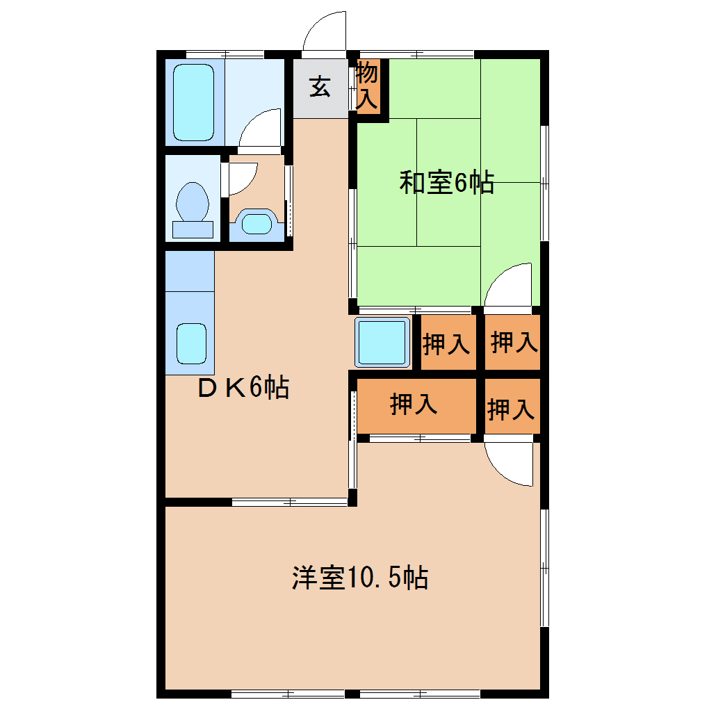 宮崎市大字田吉 ファミリー向け 賃貸アパート3DKを2DKに間取り変更。広々とした洋室は使い勝手が良くなりました。南向きで日当たり、風通し良好。