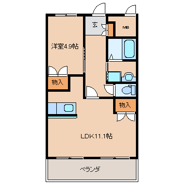 | ◎間取内訳 | 洋室4.9帖+LDK11.1帖 |