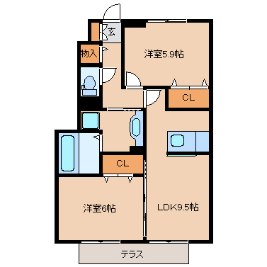 | ◎間取内訳 | 1階:洋5.9+洋6+LDK9.6/2階:洋6+洋6+LDK11.9 |