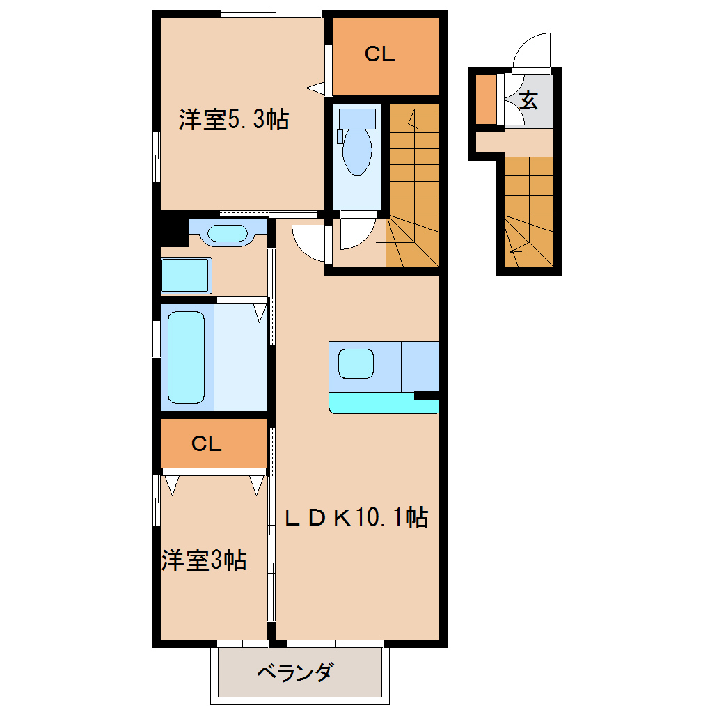 | ◎間取内訳 | 1階:洋5.1、LDK10.1 / 2階:洋5.3、LDK10.1、プラスルーム3 |