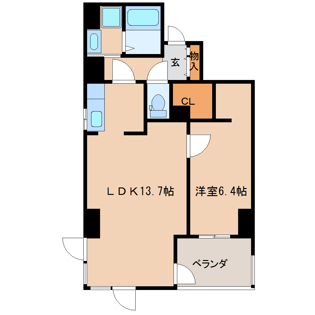 Aタイプ:洋6.4、LDK13.7 / Bタイプ:洋6.6、LDK16.1