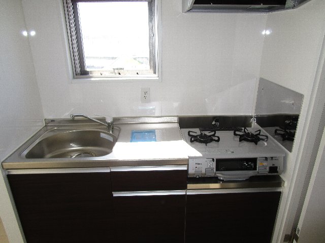 オートロック、防犯カメラ、TVドアホン、エレベーター、大型シューズボックス、室内洗濯機置場、独立洗面台、追い焚き機能付きバス、2口ガスコンロ(グリル付)、エアコン2台、ウォークインクローゼット
