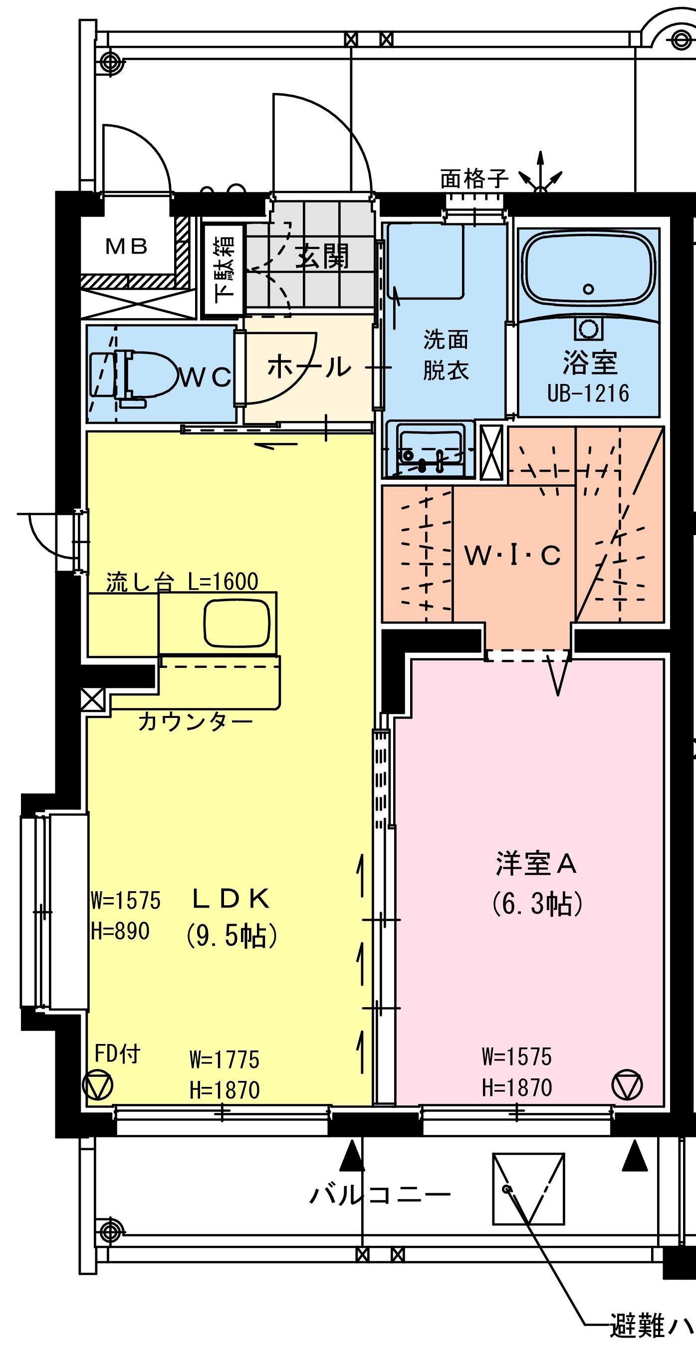 ■Bタイプ:1LDK(3戸)LDK9.5帖+洋室6.3帖