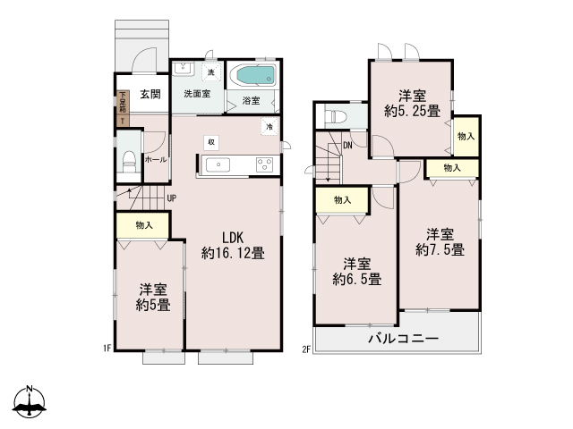 洋室5、洋5.25、洋6.5、洋7.5、LDK16.12