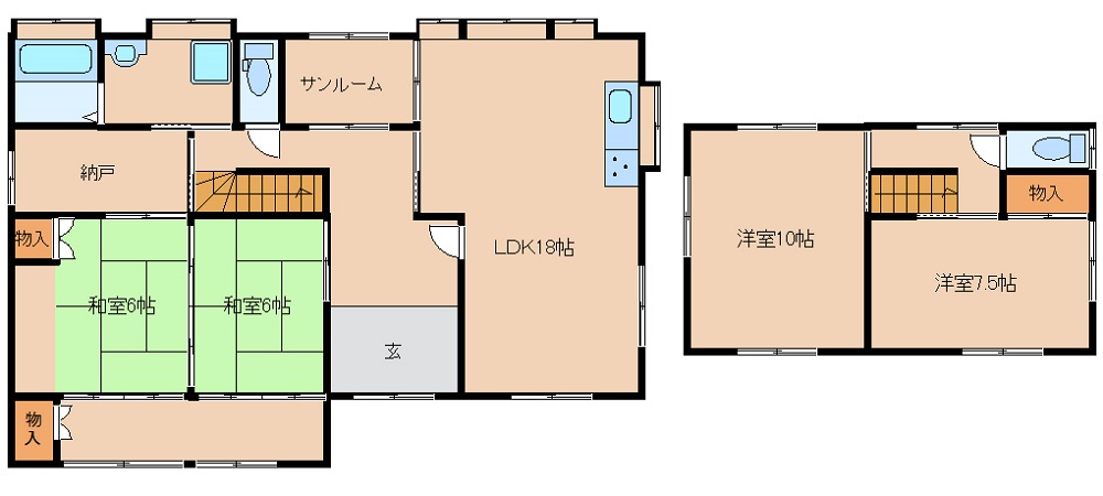 | ◎間取内訳 | 1階:和室6×2、LDK18 2階:洋室7.5、10 |