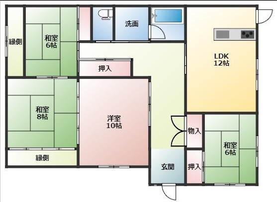 | ◎間取内訳 | 和室6帖×2、和室8帖、洋室10帖、LDK12帖 |