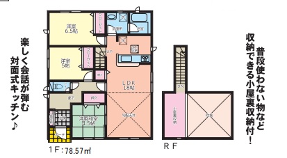 | ◎間取内訳 | 洋室5帖、洋室6.5帖、和室4.5帖、LDK18帖+小屋裏収納 |